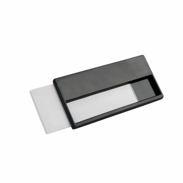 Herbruikbare naambadges voor iedere gelegenheid. De Name Badge heeft een vaste vorm en biedt de mogelijkheid om eenvoudig zelf namen te vervangen. U kunt uw eigen naam op een kaartje schrijven of printen (65x28mm) en in de badge plaatsen. Het venster waar de kaart zichtbaar is, is 64x14mm.