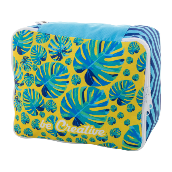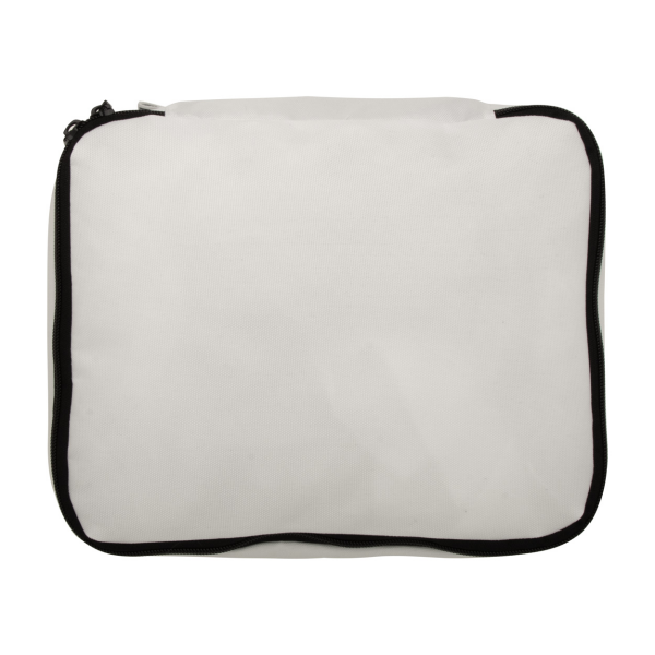 Custom made bagage-organizer met rits in 600D RPET polyester. Met all-over sublimatiebedrukking en onderscheidend RPET-label. MOQ: 25 stuks.